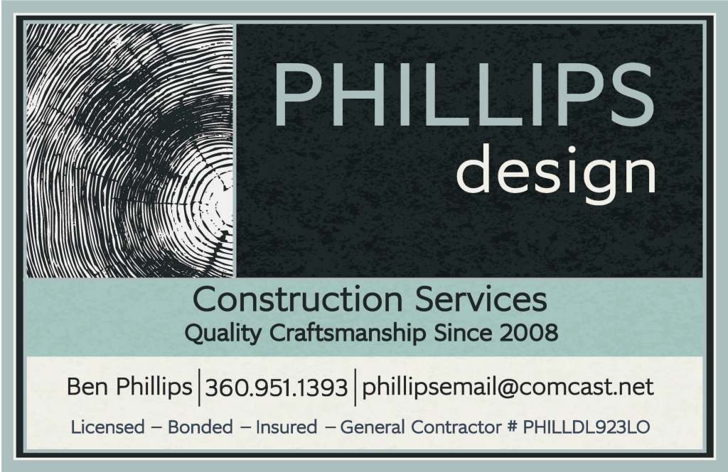 PHILLIPS design has been providing construction services and quality craftsmanship since its founding in 2008. For almost 2 decades Ben Phillips and his team have worked primarily in Thurston County and have established a reputation of integrity, quality work, diligence and friendly customer service. Building relationships and establishing trust with those in the Thurston County community is one of PHILLIPS design’s core objectives.